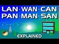 Network Types: LAN, WAN, PAN, CAN, MAN, SAN, WLAN