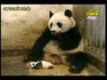 Niesendes Pandabärenbaby erschreckt seine Mutter