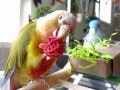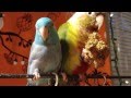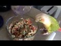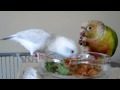 White Parrotlet & Pineapple Conure - Smokey and Hazel eating their fruit & veggies