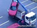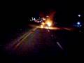 car on tow truck in flames