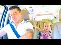 Nastya and papa sleeping at farm sheep Family fun trip