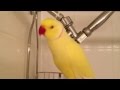 Lutino Indian Ringneck - Bowie bathing on a sunny day