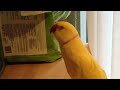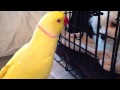 Bowie's first day home - Lutino Indian Ringneck