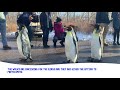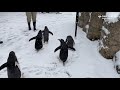 Penguins at the Saint Louis Zoo Take a Walk Outside in the Snow Flurries
