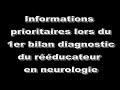 Informations prioritaires lors du 1er bilan diagnostic du rééducateur en neurologie. Version 09/2025