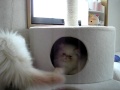 Hank the Himalayan cat doing a couple of tricks.