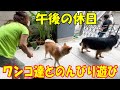 ワンパク青空叱られます!午後の休日ワンコ達とのんびり遊びます。秋田犬そら、シェパードマック君