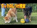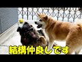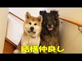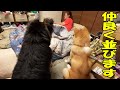 秋田犬そら君シェパードマックと仲良し練習してます