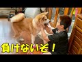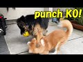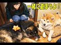 punch!秋田犬そら(青空)シェパードマックにKOされました。猫パンチ炸裂