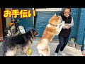働く秋田犬そら・良い仕事しますね♪シェパード犬マック呆れてます