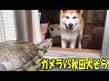 ガメラVS秋田犬そら ワンコが通る道ですね