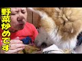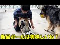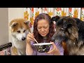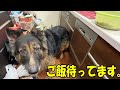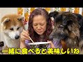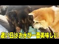 Lick♪ Eat! Sora the gluttonous Akita dog and Mac the German Shepherd dog are doing well.