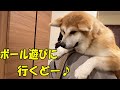 秋田犬そら(青空)独り遊び、響には負けないぞ!