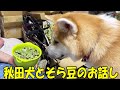 秋田犬そらとそら豆のお話し、シェパードマックも挑戦しますbroad bean