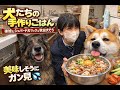 我が家の食卓にはワンコが一番似合いますね。秋田犬そら君シェパードマック犬君