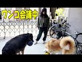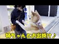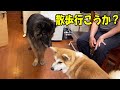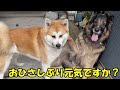 そら散歩行こうか?秋田犬そら朝散歩誘うシェパードマック君