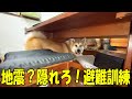 地震!隠れろ!おにぎり食べたい、秋田犬そら・シェパードマック