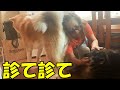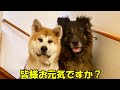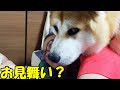 秋田犬そらお見舞いは美味しいね♪シェパード犬マックは心配してます