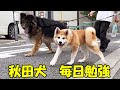 放課後遊びが待ち遠しい♪秋田犬そら・シェパード犬マック