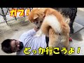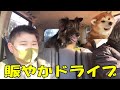 大型犬とドライブ♪のんびり放課後遊び・秋田犬そら・シェパード犬マック