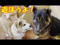 Let's play together ♪ Mac the German Shepherd and Sora the Akita