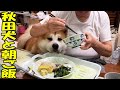 Akita dog Sora's favorite food: homemade radish and pork rice and relaxing time after the meal