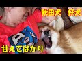 甘え上手な秋田犬そら生後7ヶ月・シェパード犬マックも甘えます