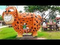 Milusik playing at the zoo, feeds animals and Giant Toys