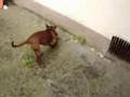 Cat has a panic attack when his string is taken.