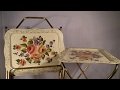 4 VINTAGE ANTIQUE METAL TIN TOLE PAINTED ROSE FLOWER TV TRAY TABLES w/ CART SET