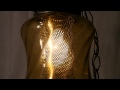 VINTAGE RETRO AMBER GLASS RIBBED HANGING SWAG LIGHT