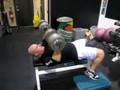 DeFrancosGym.com - 435 lb. thick bar 2-board press X 2 EASY reps!!!