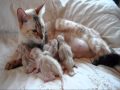 Snow BENGAL KITTENS 12 hours old born here at Maplewood Bengals.