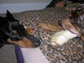 Isis the dobergirl steals Blues bone