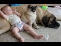 Hunde sind Babysitter und beschützer - Süße Hunde passen auf Babys auf.