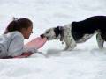 Dog steals sleds from kids - Funny