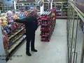 sum american cop dancing in a shop