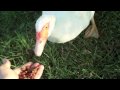 Muscovy duck eating catfood