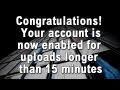 Congratulations! Your account is now enabled for uploads longer than 15 minutes