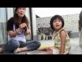 シャボン玉で孫娘と遊ぶハスキー達 soap bubble play