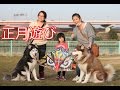 2016正月遊び ハスキー犬達と子供(孫達)で凧揚げボール遊び