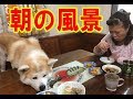 ハスキー犬と子供達の朝食事の風景Breakfast for my grandchild and dogs
