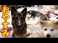 秋田犬 シベリアンハスキー犬 シェパード犬の就寝風景