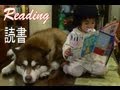 Husky and child table ハスキーと子供とテーブルで読書