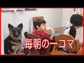 ハスキー犬 シェパード犬 秋田犬 朝の一コマ Morning of dogs