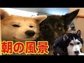 犬達の日常(早朝編)秋田犬 シェパード犬 ハスキー犬