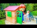 Funny Stacy plays with Giant Toys on the Home playground