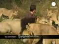إنسان يمزح مع أسود ولبوات انظروا ماذا حصل له