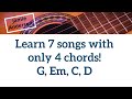 Learn seven songs with four chords, G, Em, C, D