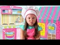 Alice and papa playing in cafe & Food Truck Toy